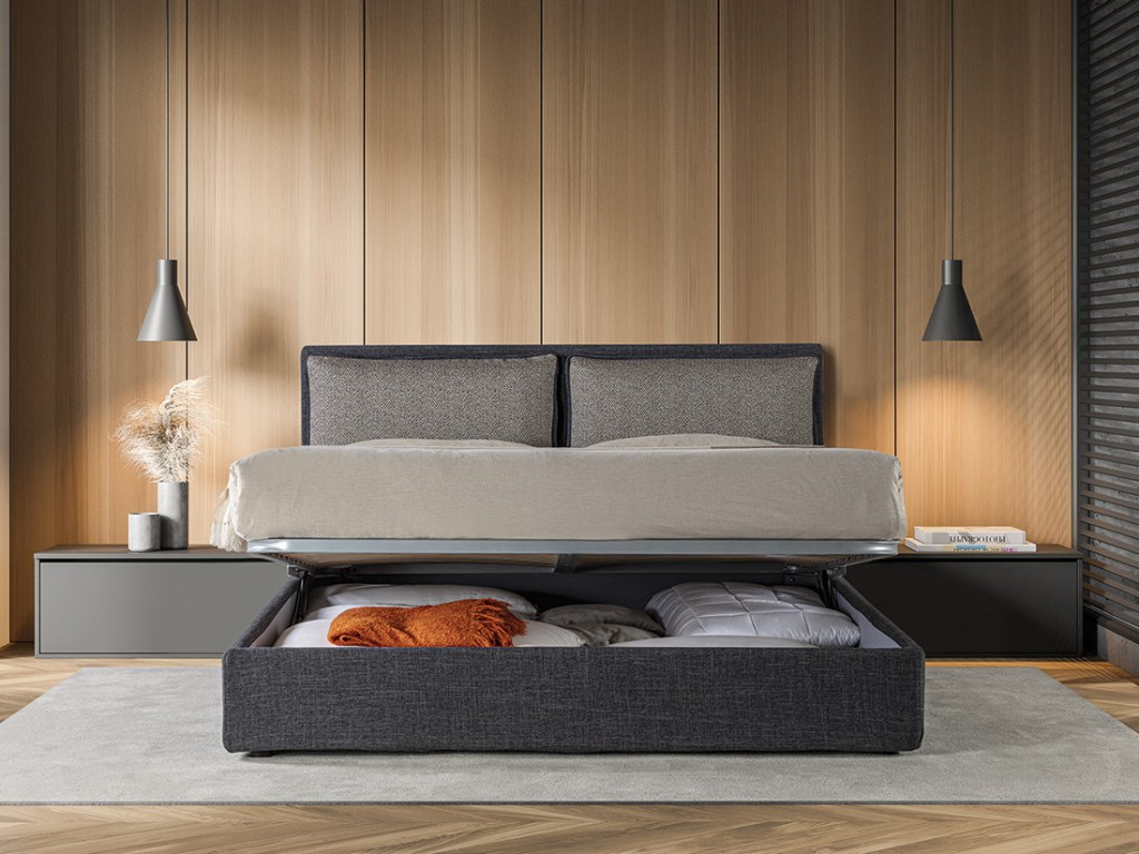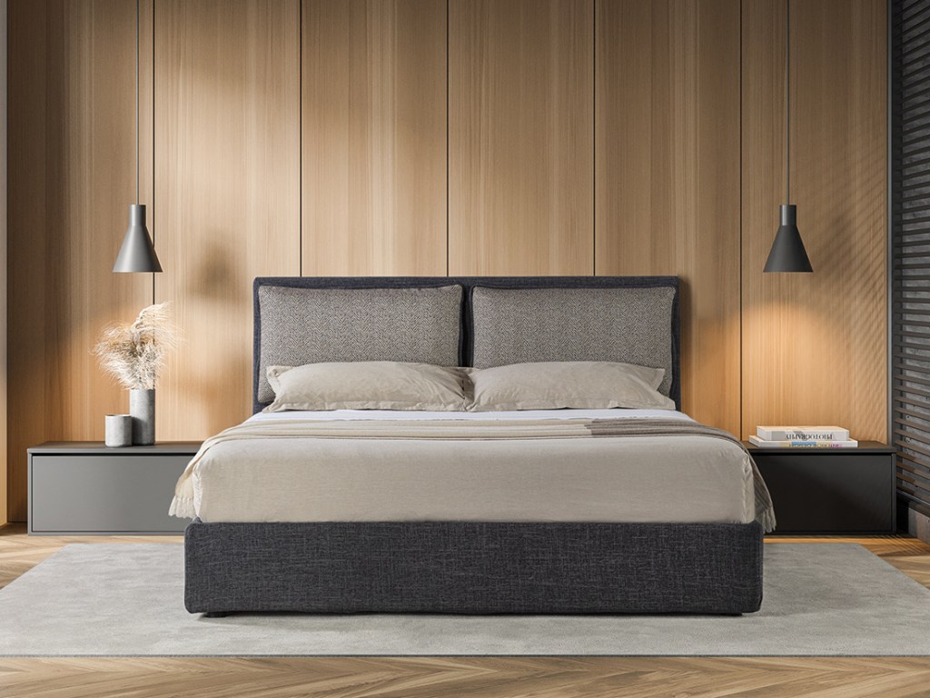 Due morbidi cuscini caratterizzano la testata del modello Droll.