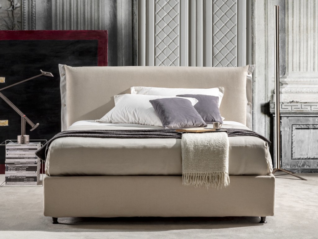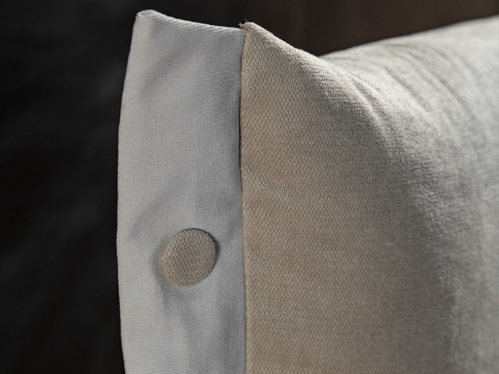 Classicità con stile: testata arricchita da un volant impreziosito da bottoni.