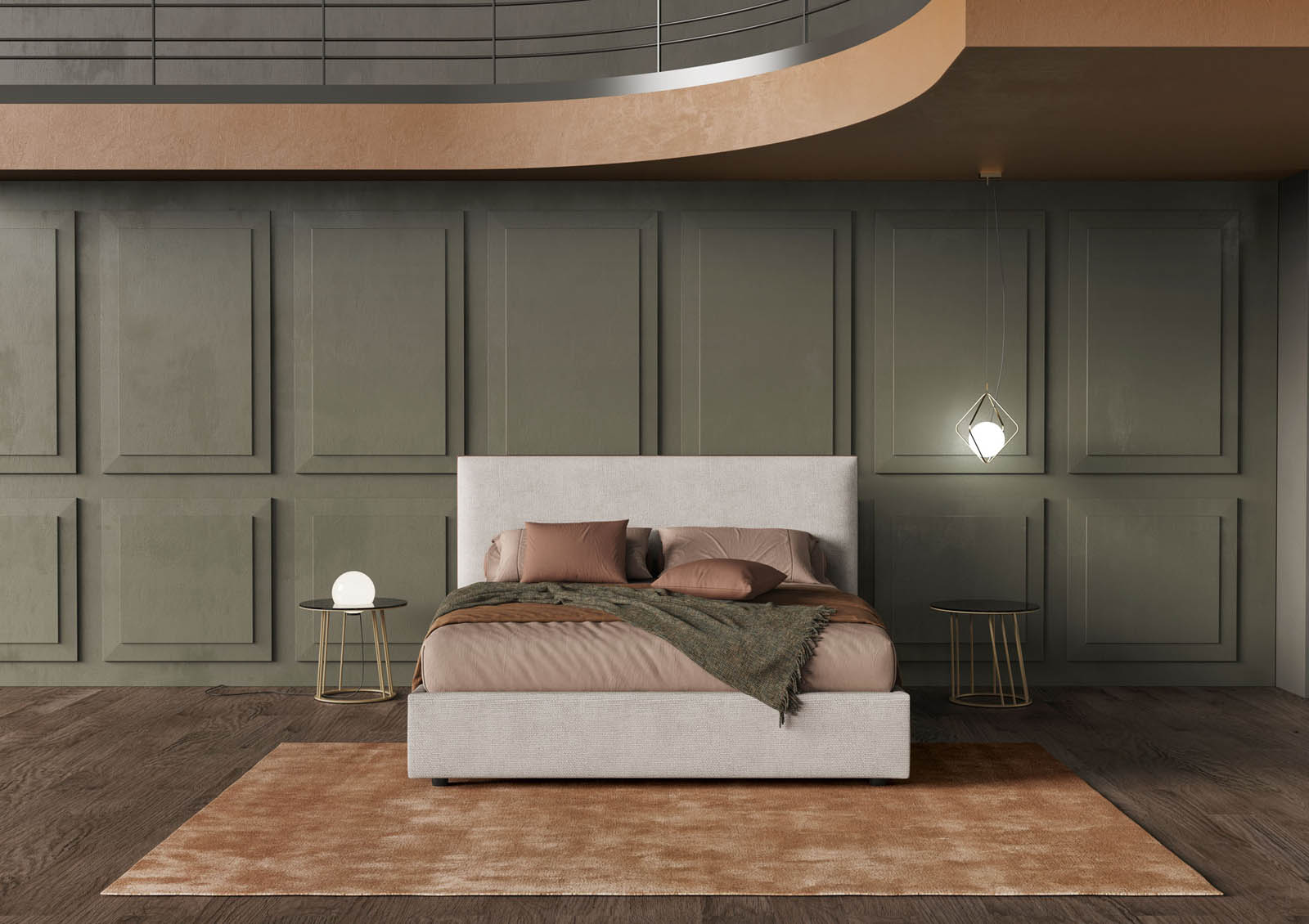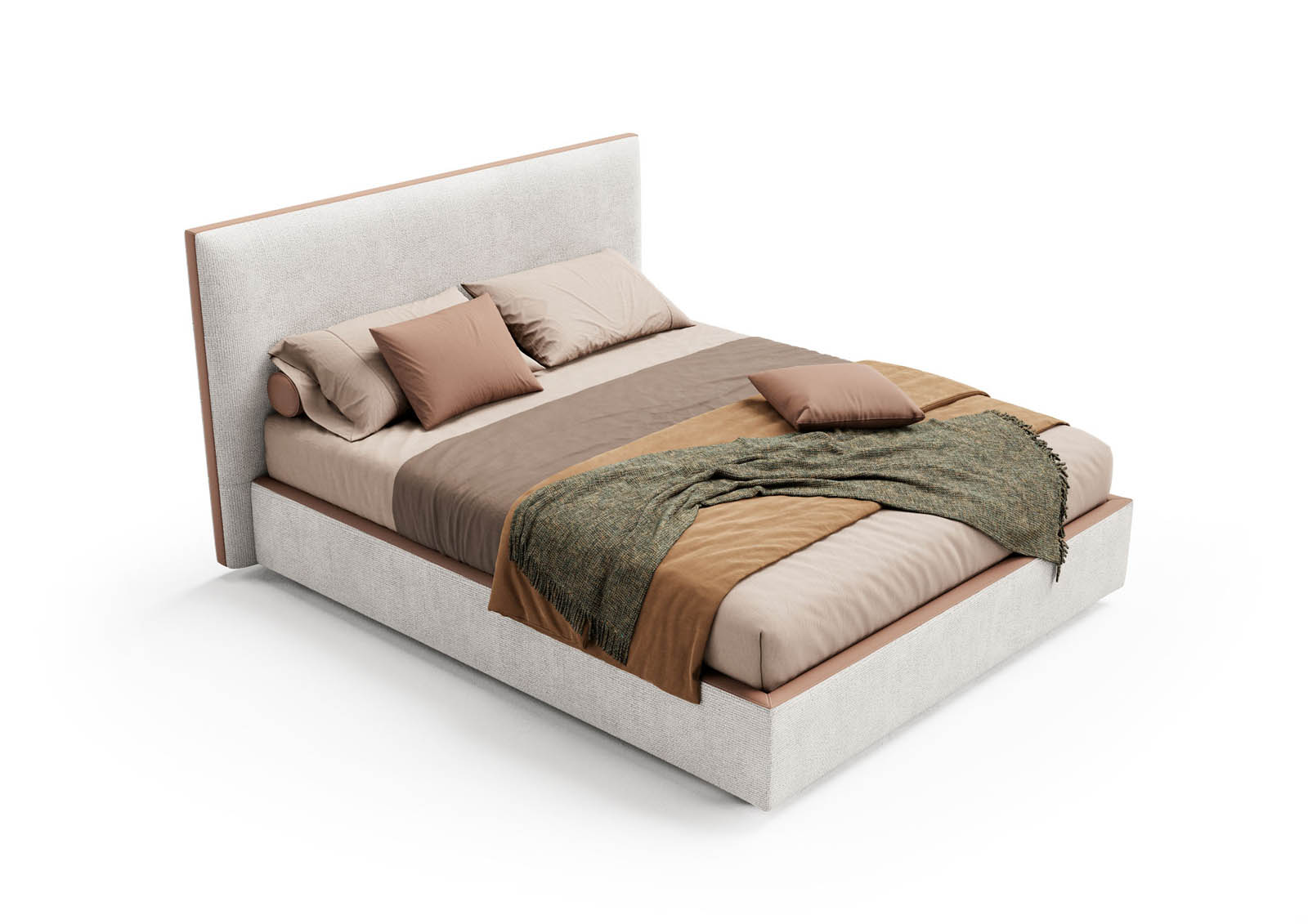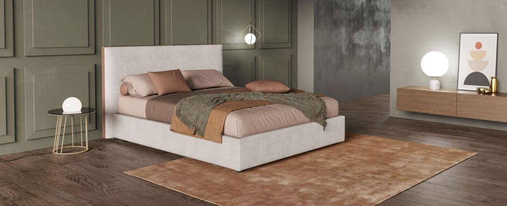Con Narciso le linee abbandonano il piano della rotondità per farsi piatte e più nette, e i movimenti si interrompono, delineando un profilo letto dalla configurazione semplice e lineare. La spalliera è l’indiscussa protagonista del letto imbottito Narciso e si sviluppa dal basso verso l’alto a un ritmo unico. Non presenta impunture centrali né movimenti che possano in qualche modo intervallarla. A conferirle ruolo di spicco ci pensa la cornice in legno che, tappezzata e affondata all’interno della spalliera, si limita a mostrare unicamente il suo bordo esterno. Il bordo esterno resta visibile lungo tutto il perimetro della testiera e può essere rivestito in tessuti e colori a contrasto con il resto della struttura letto.