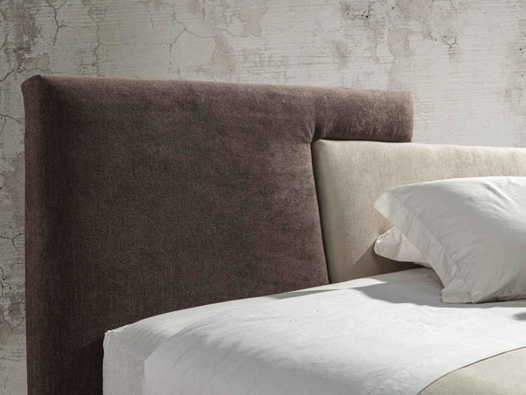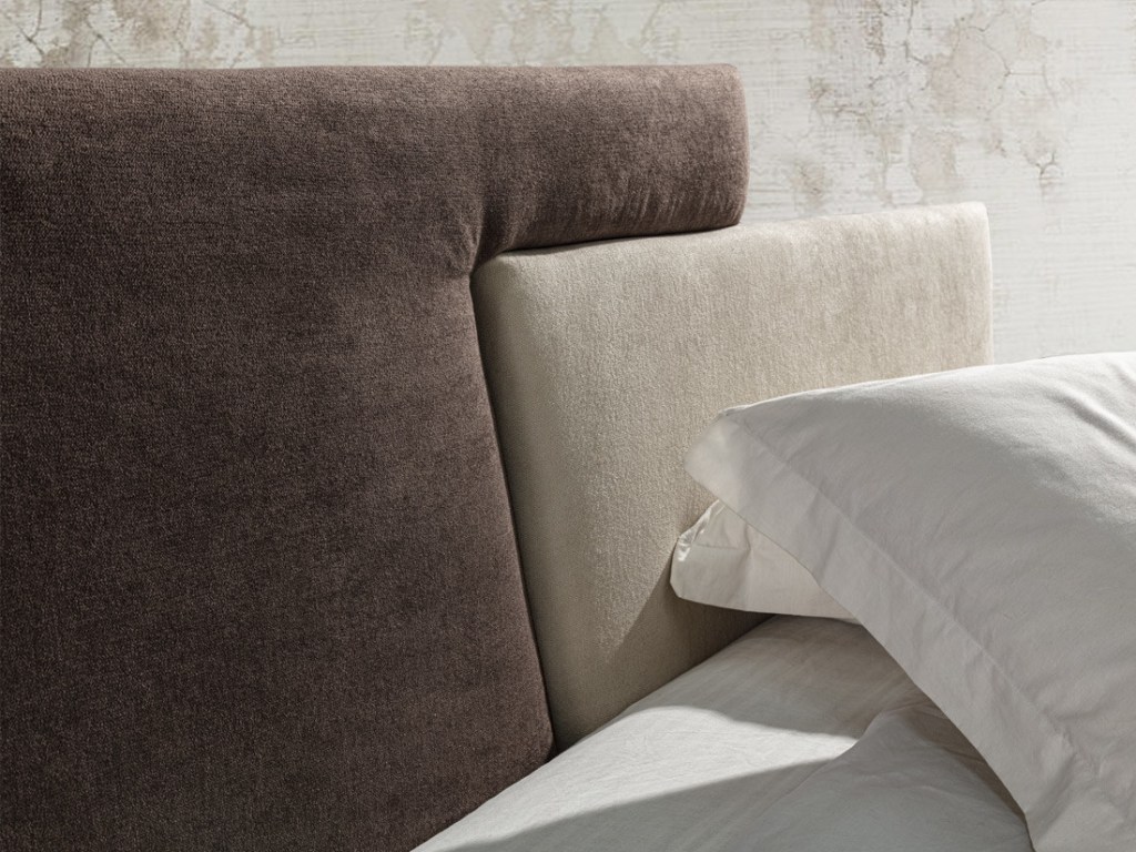 Testata asimmetrica con la massima possibilità di personalizzazione dello stile scegliendo per i pannelli tessuti e colori differenti.